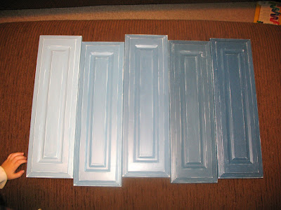 This is one of my favorite projects so far - I found these 5 cabinet door fronts at a thrift store for $2.50 - bought some paint, painted them and then sanded and distressed them. Then I found the knobs for $4.50 - TOTAL PRICE $7!!!!!!!! With the help of my hubby we put it together!!! Love how this turned out and how fun it was to create something and see beyond the white boards -